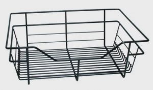Handles, hanging rods and baskets come in a choice of matt nickel or dark oil-rubbed bronze finishes.