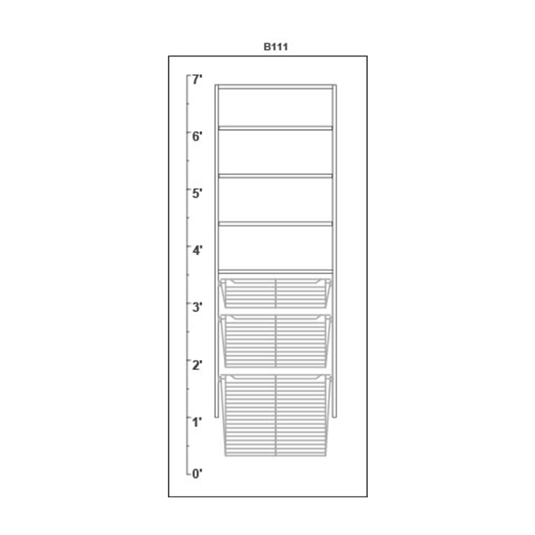 B111: 1 Small + 1 Medium + 1 Large Pull-Out Baskets + 3 Adjustable Shelves