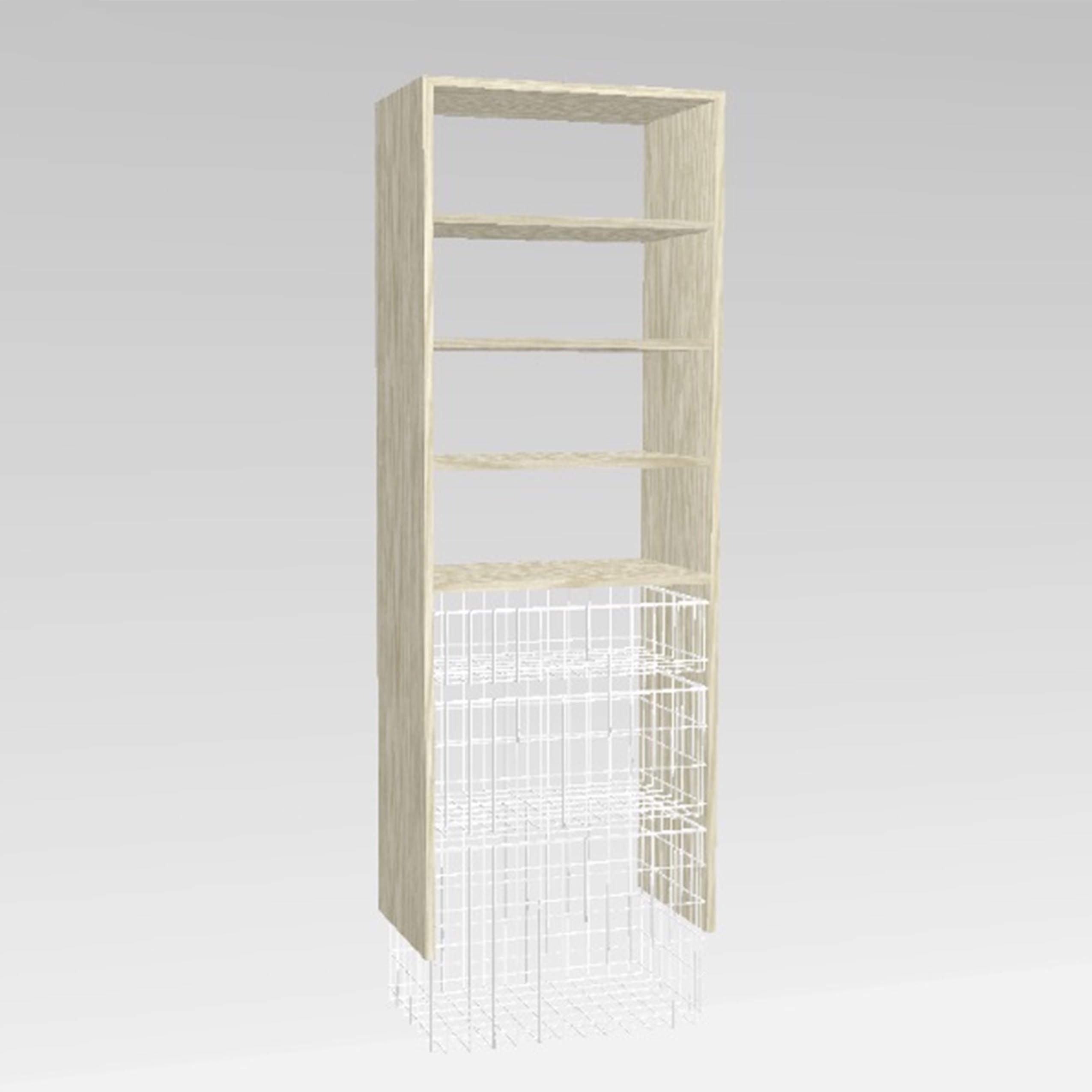 This section comes with 1 small (6 inch) basket, 1 medium (11 inch) basket, and 1 large (17 inch) basket, plus 3 adjustable shelves.