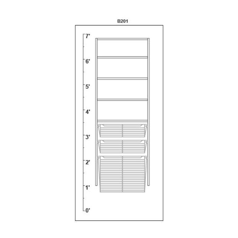 B201: 2 Small + 1 Large Pull-Out Baskets + 3 Adjustable Shelves