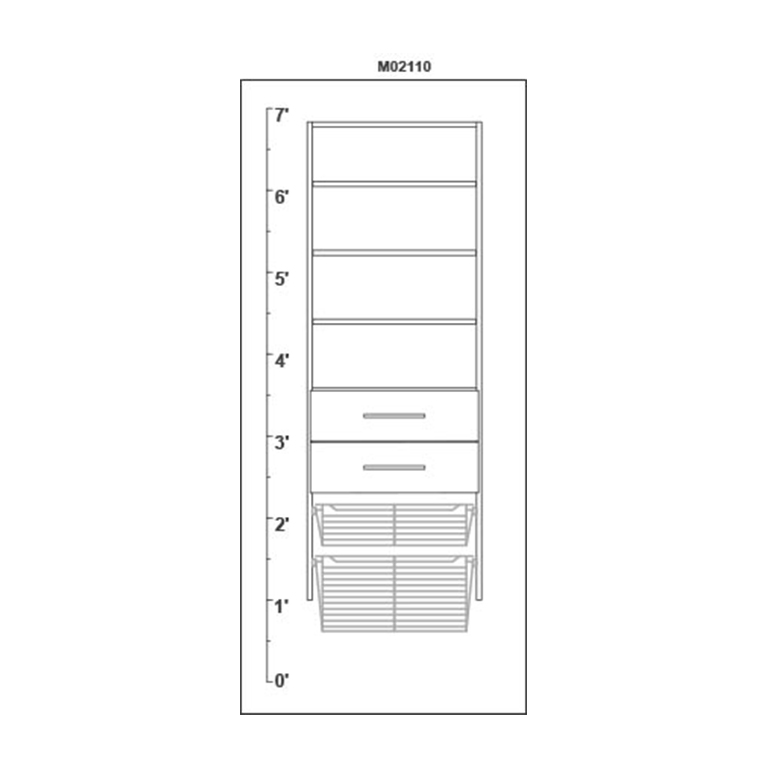 M02110: 2 Large Soft-Close Drawers + 1 Small + 1 Medium Pull-Out Baskets + 3 Adjustable Shelves