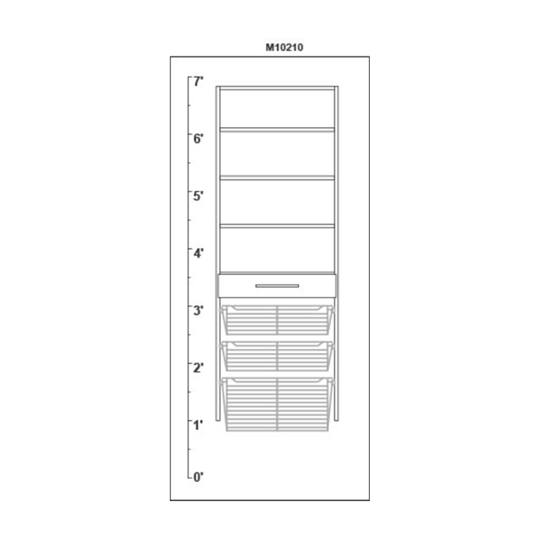 M10210: 1 Small Soft-Close Drawer + 2 Small + 1 Medium Pull-Out Baskets + 3 Adjustable Shelves